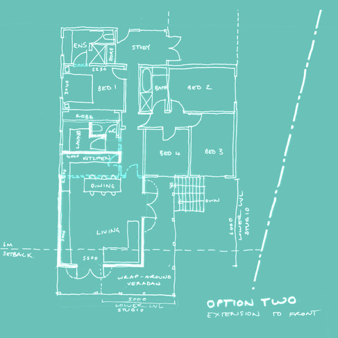 This renovation project involved a compact 1950s weatherboard home. The Owners for this project were keen to expand the living space, which was very cramped in the home's current arrangement. On site, I sketched for them the idea they had in mind, which involved extending the home towards the side boundary. Once this idea was down on paper, I was able to identify for them the flaws of this approach. As an alternative, I gave them an option which orientated the living area towards the views at the front of the house, and significantly improved the homes street presence. A first response, either by Owner or Architect, is not necessarily the best approach, and we work through different options in the Design Workshop to flesh out the best approach.